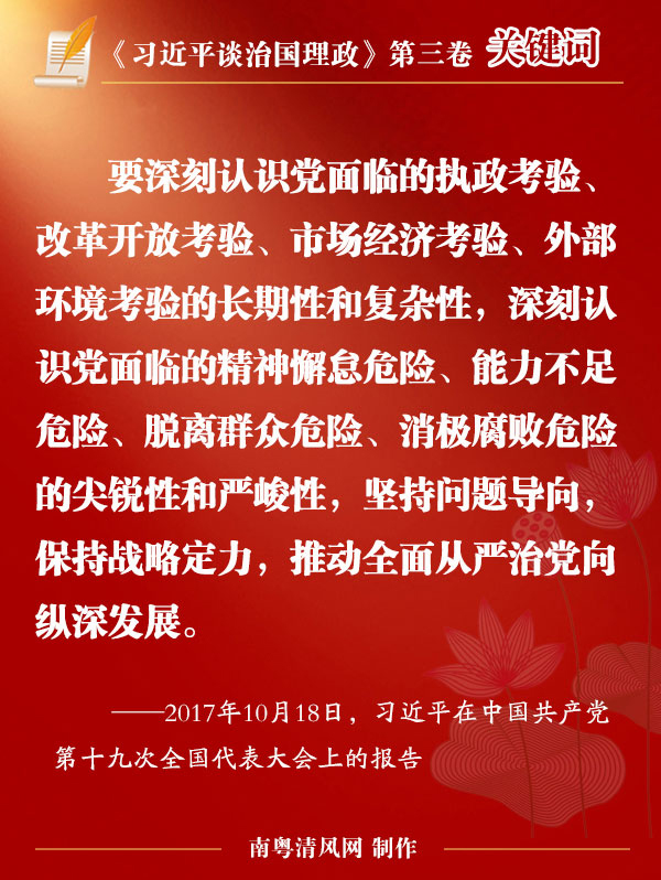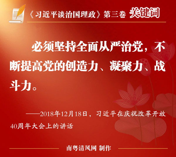 我们梳理了书中与全面从严治党、党风廉政建设和反腐败斗争相关的10个关键词,与大家一起分享学习。今天的关键词是“全面从严治党”。
